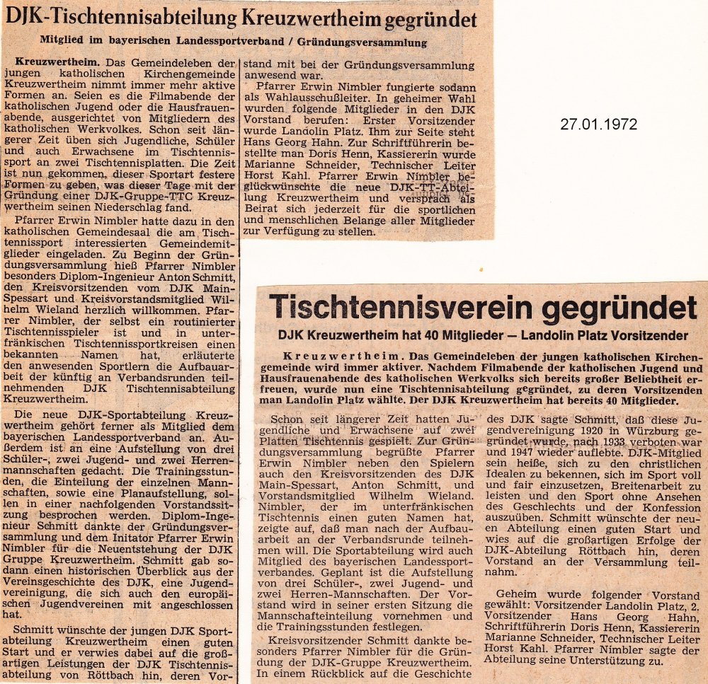 DJK TTC Kreuzwertheim wurde am 27. Januar 1972 gegründet.